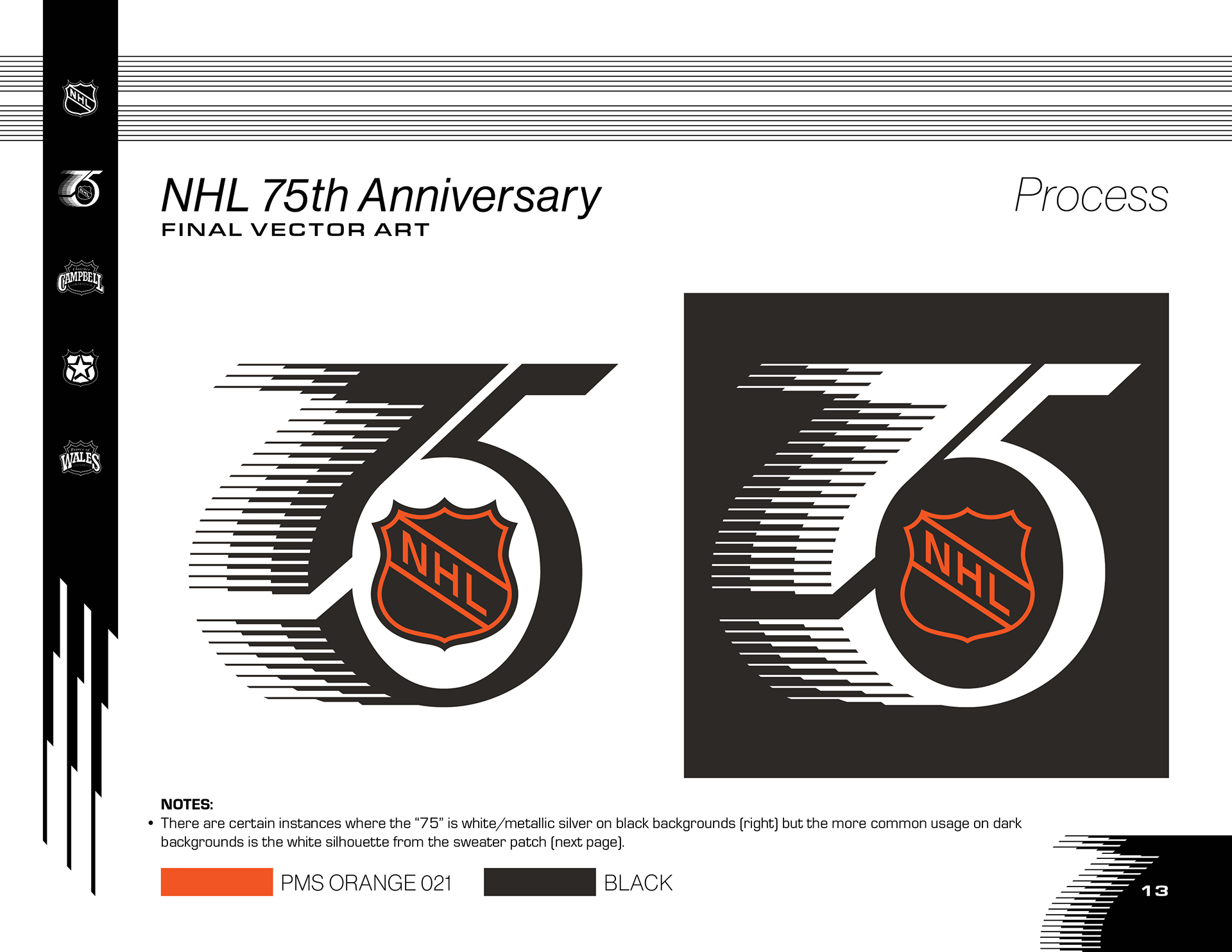 After finding an authentic printer's style guide from 1991, I pivoted the research from one franchise at a time to a whole season in hockey history. The NHL 75th Anniversary in 1991–1992 is one of the most popular seasons for Vintage NHL graphic design. This was a chance to reverse engineer a style guide in a contemporary format that would lay the foundation for more accurate and comprehensive guides in the future.