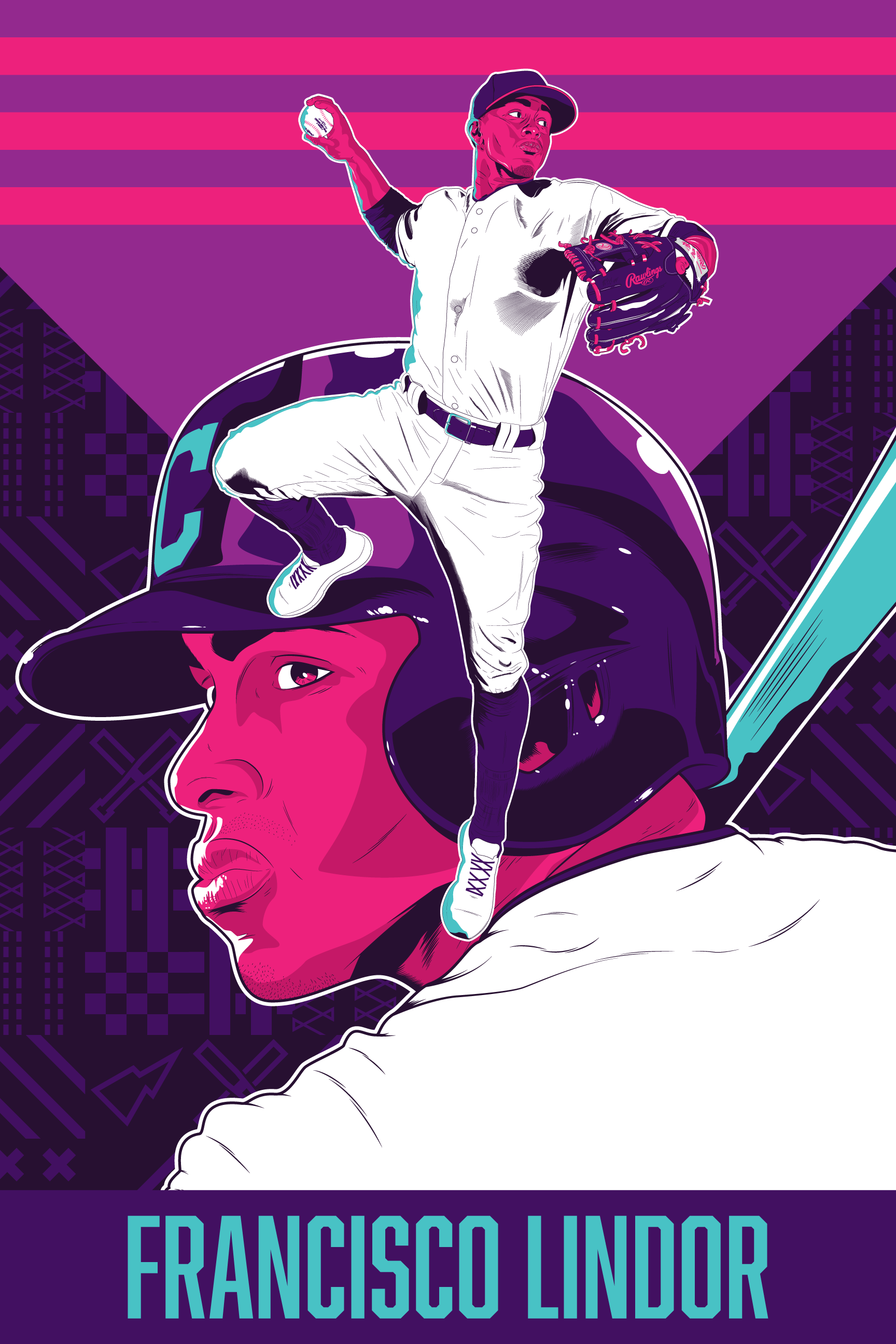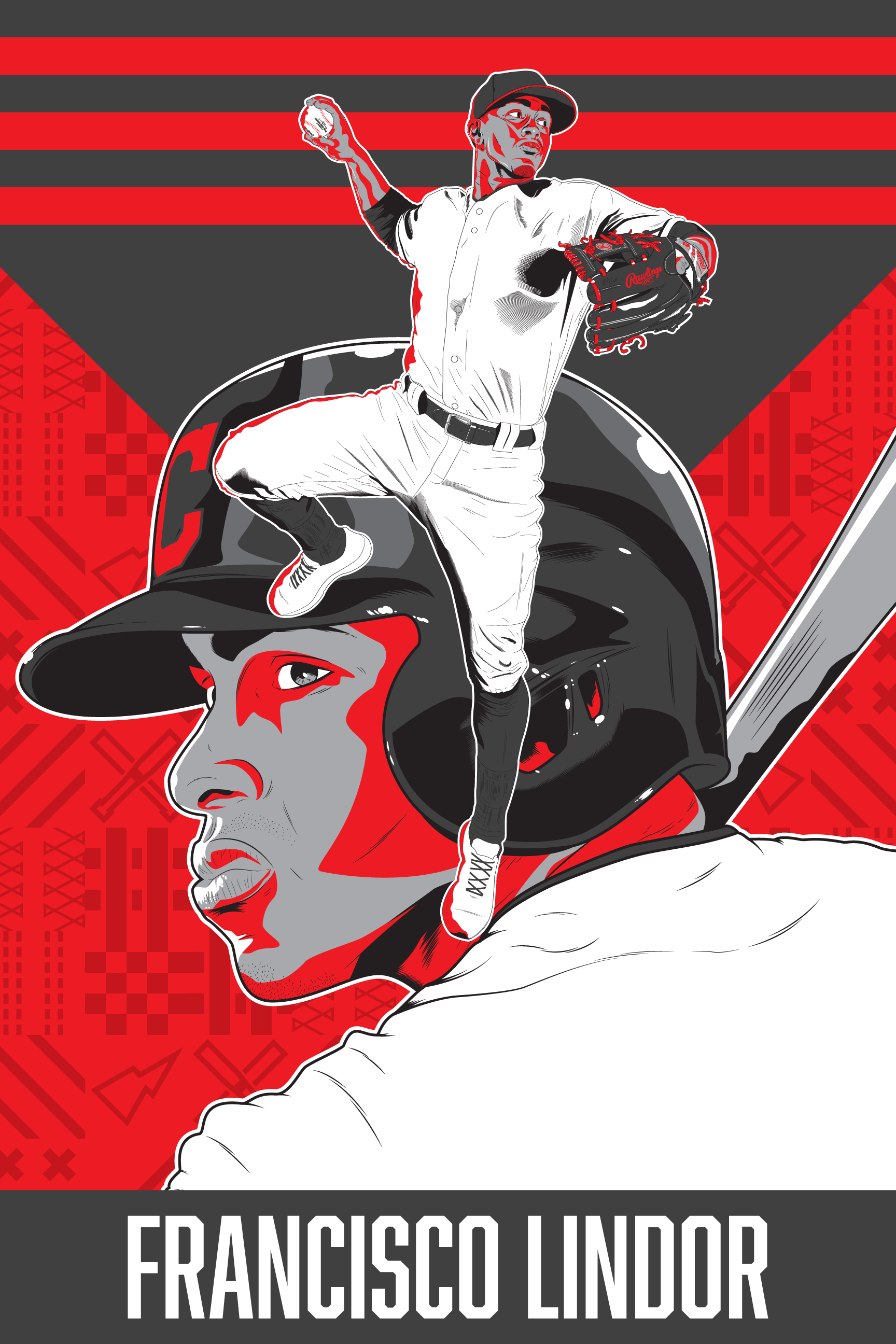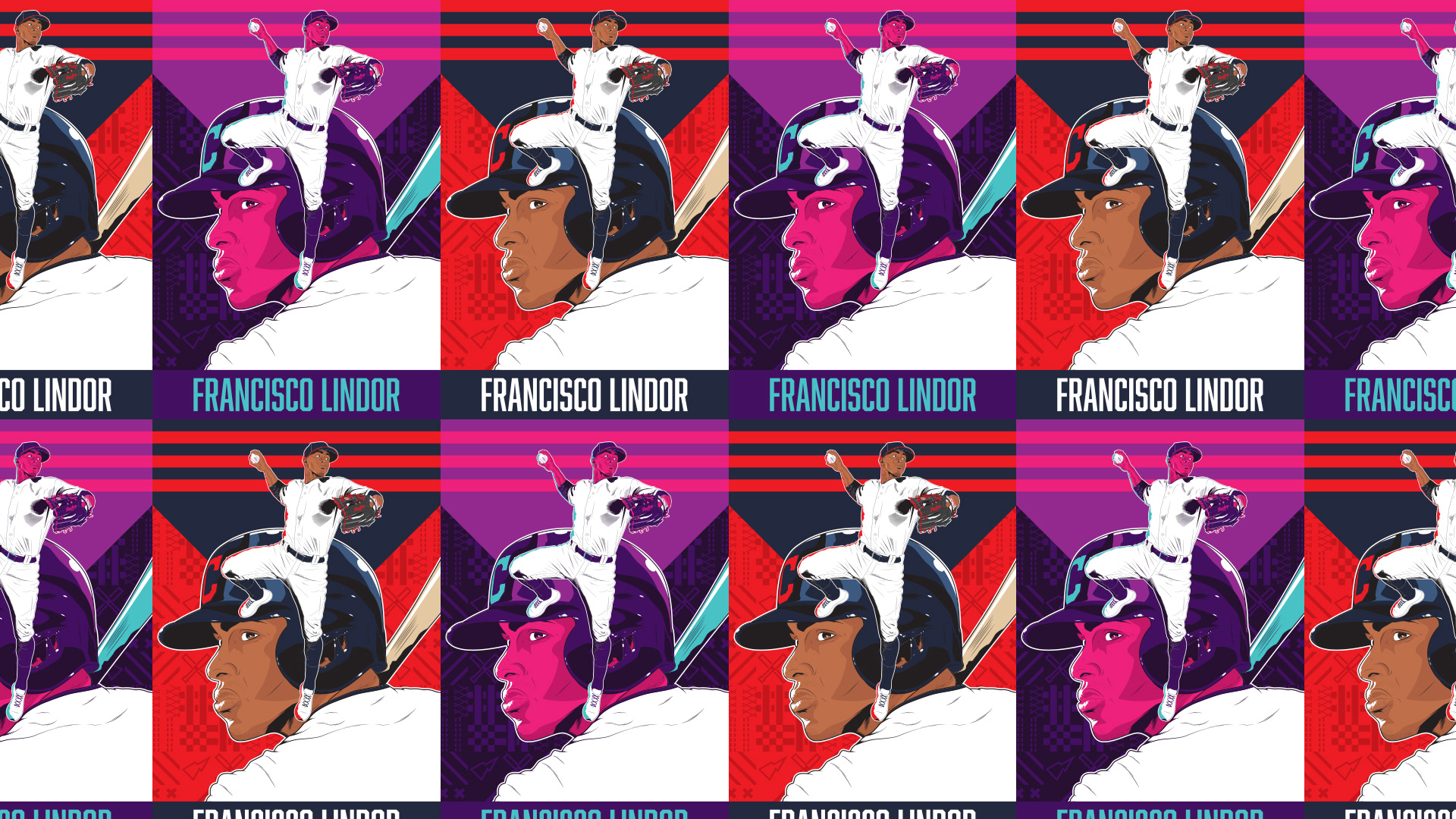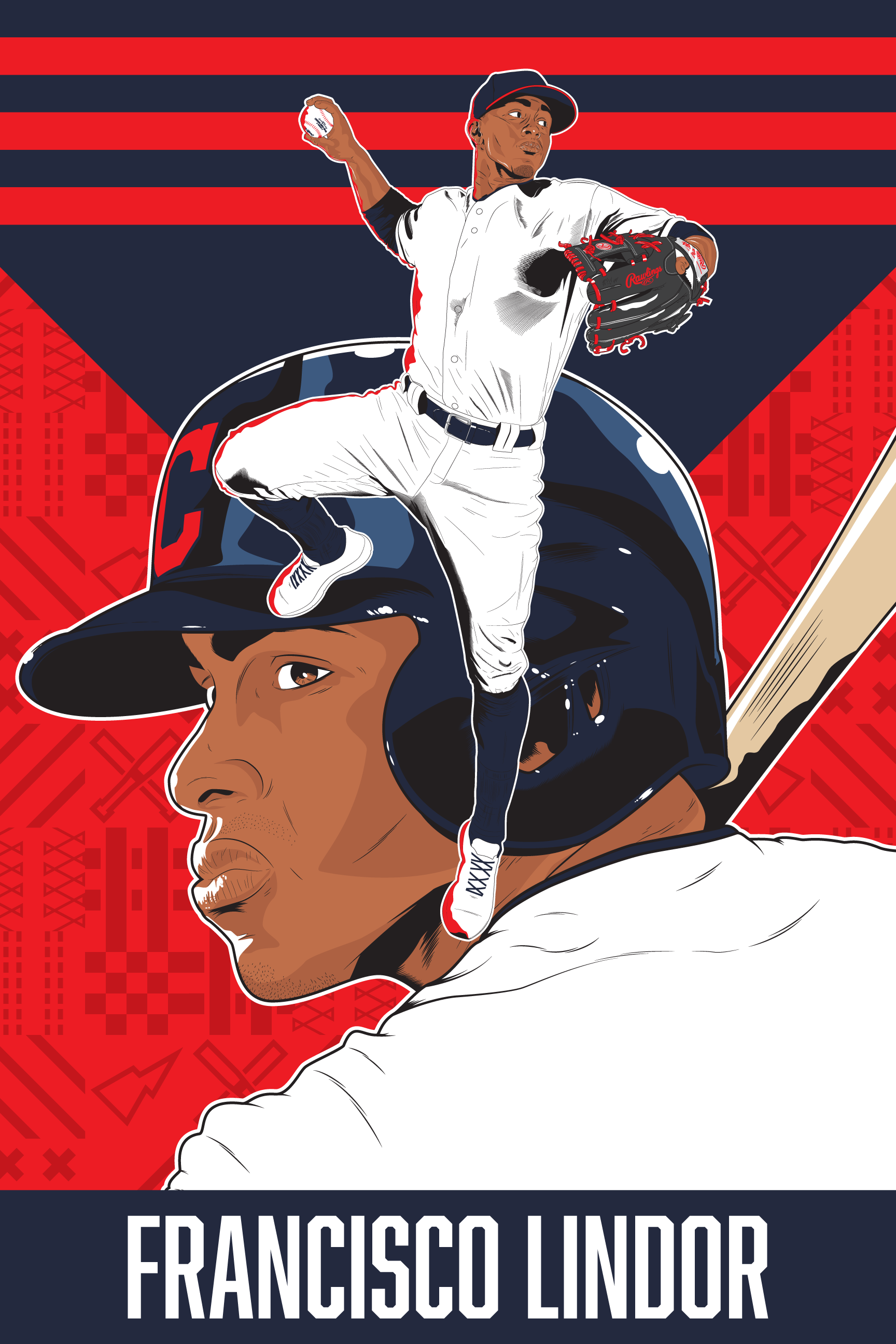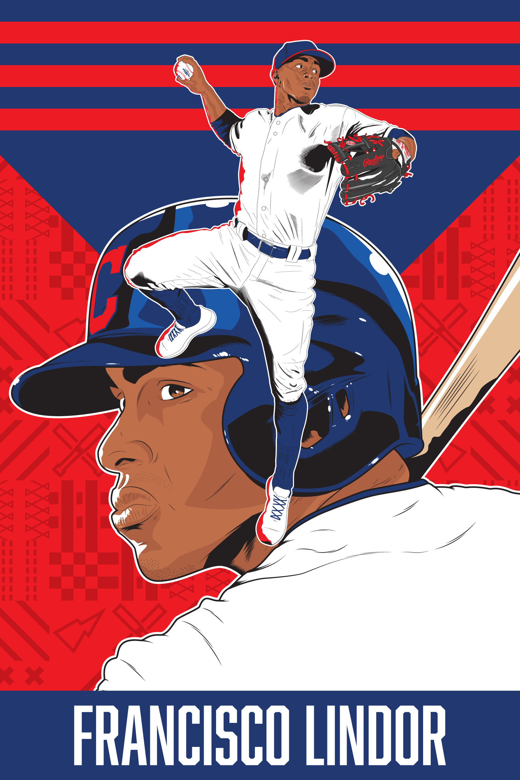 Vector illustration and poster design with variants of pro baseball player: Francisco Lindor.